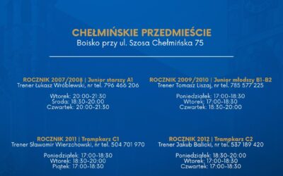 Treningi, rozwój, sportowa pasja – Akademia Pomorka nie zwalnia tempa! Przedstawiamy harmonogram treningów na nowy sezon 2025/2026! Nasze zajęcia odbywają się w czterech lokalizacjach: Chełmińskie Przedmieście Wrzosy Lewobrzeże Bydgoskie Przedmieście (do czasu remontu orlika zajęcia będą odbywać się na Chełmińskim Przedmieściu) Każdy trening to godziny pracy nad techniką, motoryką i taktyką – z naciskiem na … Czytaj dalej Treningowy rozkład jazdy Akademii KS Pomorzanin Toruń!